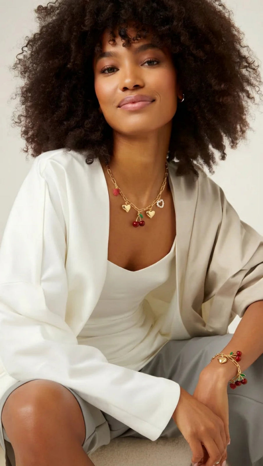 Cada dije aporta un acento visual equilibrado, permitiendo que el collar y la pulsera convivan entre sí sin saturar ni competir en el look.