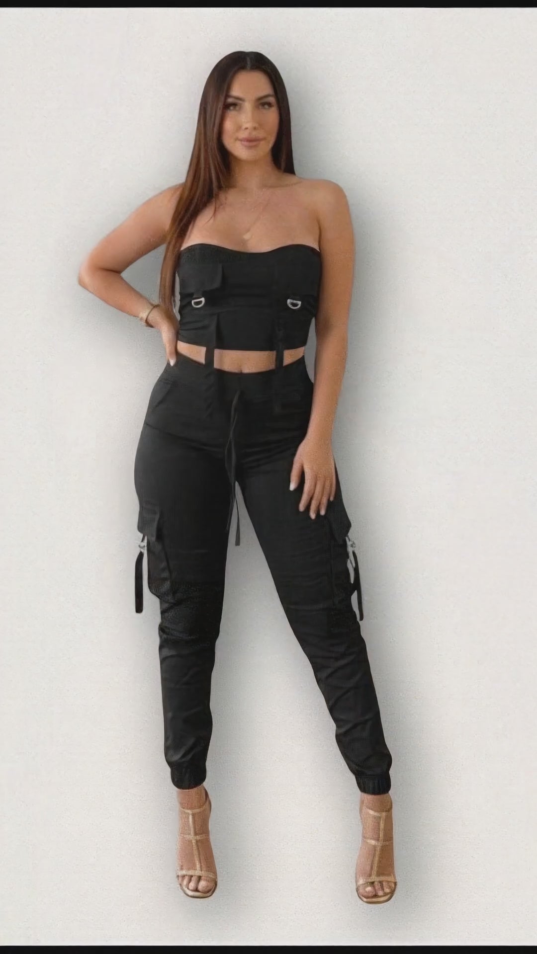 Set de 2 piezas LUMINA: top tipo corset + pantalón tipo jogger.
